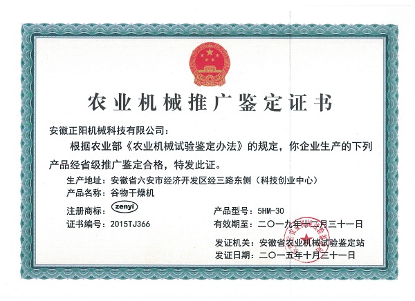 農(nóng)業(yè)機械推廣鑒定證書