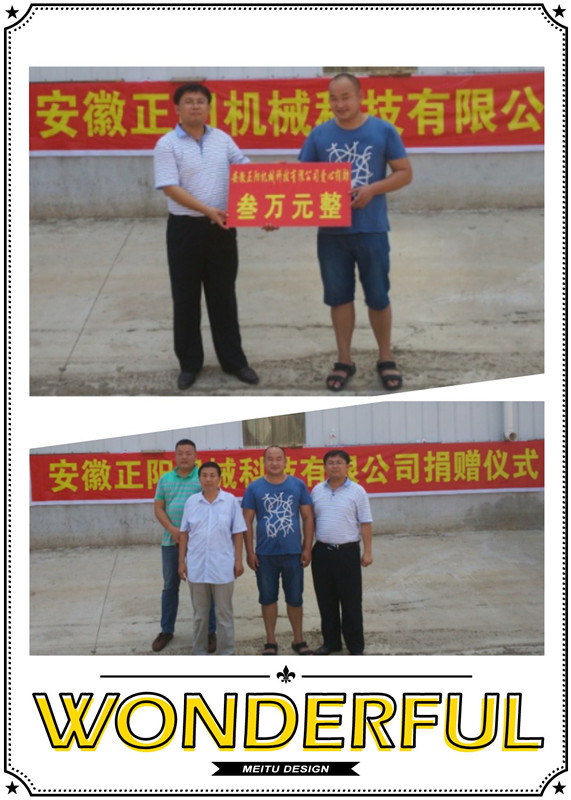 2016年6月下旬以來嚴重的皖南洪澇災害直接導致安徽省宣城市郎溪縣“正陽”忠實用戶陳總9臺機器受淹,直接、間接損失達五六十萬元,我們急客戶之所急,想客戶之所想,積極響應黨和政府的號召,公司總經理張為法先生當即決定在客戶最困難的時候,伸出我們的援助之手,決定在洪水退卻后免費對9臺機器進行保養維護,更換受損傳動件,同時捐贈三萬元善款!