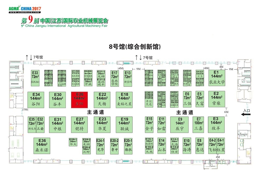 第9屆中國(江蘇)國際農業機械展覽會展位分布圖:紅色區域